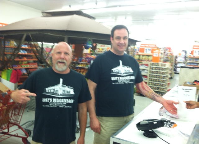 Ok, so stay with me now because here comes the good part. As I finished paying I turned around and almost went blind from shock and awe. It was as if the Universe wanted to show me its wondrous truth about who really runs this Broadway stage show called life. An even bigger shlub right behind me was carrying a couple of nondescript food items that no other self-respecting grocery store would think of stocking let alone selling as edible, ie. Jeff Foxworthy brand Beef Jerky, Deion Sanders Kettle Style potato chips, etc. As I looked up at him it hit me like a bolt of lightning of the non-ordinary reality kind. The guy was standing there wearing THE EXACT SAME VINTAGE BLACK KATZ NYC DELI T-SHIRT AND FILTHY KHAKI SHORTS!! When our eyes met it was as if I had seen and nearly touched my younger big geek spiritual doppelganger. I was him and he was me. Both of us were cheap ass Big Lots customers and, in fact, we WERE Big Lots. All was ONE and all was in perfect unity. For a brief moment I wondered if I shook his hand if it would set off some kind of weird Cosmic chain reaction or Big Bang. I actually felt like hugging the big sweaty older lady who was initially in front of me…but she had already left the store albeit it very very slowly. Bottomline: There are times in life and in our mundane existence on Planet Earth when we are given a rare chance to see through the veil of illusion and suffering. There are many “burning bushes” so to speak. We are here for a reason. No, I dont mean I was given birth at this time to buy Justin Bieber toothbrushes…although at 50 cents each (batteries included) that is quite a shopping coup. I really mean we should pay attention to those so called “coincidences” when God (or Zeus, etc.) wants us to see “ourselves in others”, to listen, to appreciate, and to love others unconditionally….even if they are slow moving sweaty enormous people who you would normally prefer to avoid, honk our car horns at, curse, run over, or judge in a prejudicial manner. Namaste. P.S. On the other hand, If these damn toothbrushes dont sing, vibrate, or do what they say they’re supposed to do I’m skipping right over the step of taking them back to Big Lots and driving over to Biebs crib and complaining directly to him until I get my dollar back. Word.